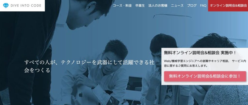 DIVE INTO CODE オンライン 無料オンライン説明会、相談会